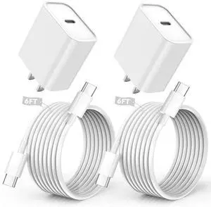 iPhone 17/16/15 Charger, USB C Charger, 2Pack 20W Type C Fast Wall Charge Power Adapter,6FT 60W USB-C to C Cable for iPhone Air/17Pro Max/15/16 Pro Max,iPad Pro 12.9/11 inch,iPad Air 5/4th,AirPods Pro