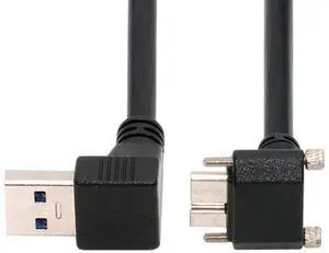 Chenyang Down Angled 90 Degree USB 3.0 A Male to Micro-B 3.0 Plug Down Angled Locking Screw Panel Cable 25cm