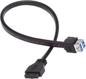 Chenyang Dual Port USB 3.0 Female Type-A Panel Type to Motherboard 20Pin 19Pin Header Cable 50cm