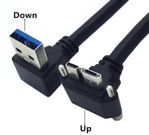 Chenyang Down Angled 90 Degree USB 3.0 A Male to Micro-B 3.0 Plug Up Angled Locking Screw Panel Cable 25cm