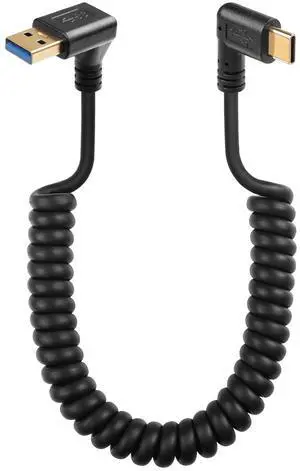 90 Degree USB Type C Spring Cable 5Gbps Retractable USB3.0 to USB C Charging Cable and Data Transfer for Phone, Tablet, Other USB C Devices (Down)