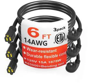 Features: This 6 FT - 3 pack power extension cord is made by huanchain and features a 14/3 Flat Extension Cord style with vinyl material. It supports a voltage of 125 volts_of_alternating_current and an input current of . The cable is Black in color and is UL listed. It comes with a Male-to-Female connector and does not require batteries.