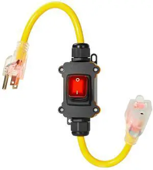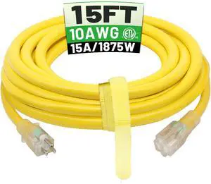 Features: This 15FT power extension cord is made by POWGRN and features a 10AWG style with pvc material. It supports a voltage of 125 volts_of_alternating_current and an input current of . The cable is Yellow in color and is UL listed. It comes with a Male-to-Female connector and does not require batteries.