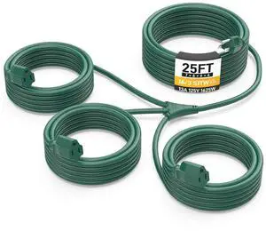 Features: This 25FT(7+6+6+6) power extension cord is made by PRIMOWIRE and features a style with material. It supports a voltage of 125 volts_of_alternating_current and an input current of . The cable is Green in color and is UL listed. It comes with a Male-to-Female connector and does not require batteries.