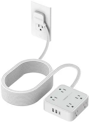 Flat Plug Long Extension Cord 25 Ft, TESSAN Power Strip Surge Protector with 8 Outlets 3 USB Ports (1 USB C), 900J Protection Desktop Charging Station for Home, Office, Dorm Room Essentials