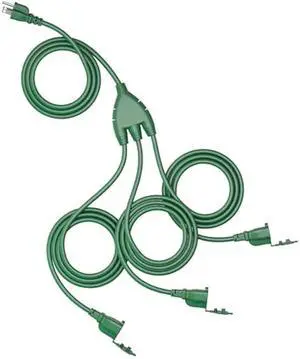 SURAIELEC Outdoor Extension Cord with Multiple Outlets, (15+10+10+10) 45FT Total, 25FT End to End, 1-3 Multi Plug Splitter, 16/3C SJTW, for Landscape, Christmas Lights, Halloween Decorations, Green
