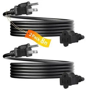 Features: This 2 PACK 8FT power extension cord is made by PASSTRADING and features a style with material. It supports a voltage of 125 volts and an input current of . The cable is Black in color and is UL listed. It comes with a Male-to-Female connector and does not require batteries.