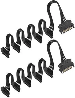 SATA Power Cable Splitter Adpater 600mm (2Pack), RIITOP 5x 15pin Serial ATA Power Cable Splitter 1 to 5, Black