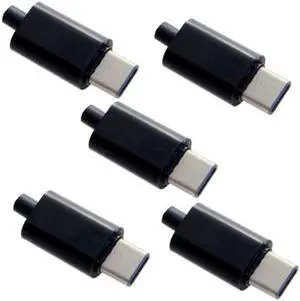 Aomoproing 5set DIY 24pin USB 3.1 Type C USB-C Male Plug Connector SMT type with Black Housing Cover