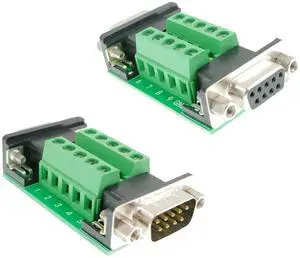 BUELEC DB9 Breakout Board Adapter 2-Pack - DB9 Male & Female to Terminal Connector for RS232/RS485/CAN/RS422 Serial Signals, 9-Pin D-Sub to Screw Terminal Module (6cm x 3cm)