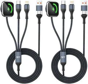 3 in 2 USB A/C Multi Charging Cable for iWatch Charger/iPhone 17 Charger/IP Cable, Cruise Essentials for Multiple Charger Cable Cord Compatible with iPhone 17-11/iWatch All Series 5FT 2PS