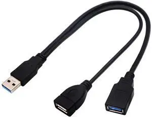 Aomoproing USB 3.0 A Y Splitter Cable, USB 3.0 A Male to Dual USB 3.0 A Female + USB 2.0 A Female Extra Power Charging & Data Transfer Dual USB Y Splitter Cable 30cm/12inch Title 2