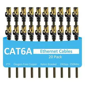 Cat6 Ethernet Cables 4 FT (20-Pack), Snagless CAT6A RJ45 10Gbps Ethernet Cable, FTP Shielded Ethernet Patch Cord, Cat6 Internet Network LAN Cable, OFC, Nylon Braided Cat 6 Cable, Gold-Plated Plug