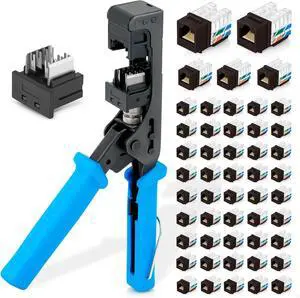 Everest Media Solutions Bundle 3 Items: easyJACK - 90° Angled Speed Termination Tool + Replacement Head + 90° Angled Cat6 Keystone Jacks in Brown (50 Pack)