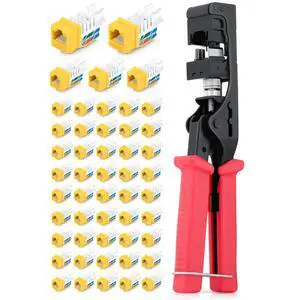 Everest Media Solutions Bundle 2 Items: 45Term - Speed Termination Tool + 50 Pack of RJ45 CAT6 UTP Keystone Jacks - Yellow