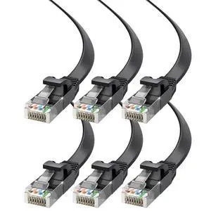Maximm Cat6 Ethernet Cable 30ft, 6-Pack Black - Flat High-Speed Network Cables for Gaming, Streaming, Router, Modem, PC, PS5, Xbox - Durable & Space-Saving Design