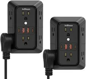 Surge Protector Outlet Extender, 6 Outlet Extender with 4 USB Charging Ports (2 USB C), 3 Sided Multi Plug Wall Adapter for Home, Office, Travel-2 Pack,Black