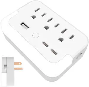 Portable Outlet Extender with Light Sensor lamp,Power Strip with 3 Outlet and 3 USB Ports(2 USB-C Ports && 1 USB-A Port Total 15.5W/3.1A).Multi Plug Wall Outlet for Home Travel Office-White