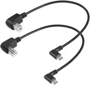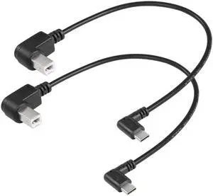 Aomoproing 2 Pack 11.8inch USB B to USB C Printer Cable, Right Angled (Left + Right), USB B Male to Type-C Male Cord for Printer, MIDI Controller, Scanner, Digital Piano, DJ Controller