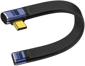 Aomoproing 90 Degree USB C Extension Cable, 40Gbps Flat Cable 240W 48V 5A, Support 8K@60Hz Audio & Video, Left Right Bent 13cm for Phones, Laptops, PC