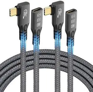 Aomoproing 2PCS 90 Degree USB 3.2 Gen2 Extension Cable, 0.25M USB C Male to Female Extender, 20Gbps Data Transfer 240W Charging Ultra 4K@60Hz, Compatible with SSD
