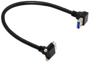 Down Angled 90 Degree USB 3.0 A Male to Micro-B 3.0 Plug Up Angled Locking Screw Panel Cable 25cm