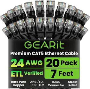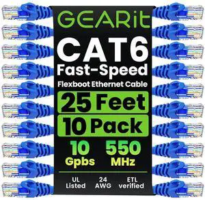 GEARit Cat 6 Ethernet Cable (50-Pack 3 Feet) Cat6 Network Patch, 10Gbps, RJ45, Snagless Cord, Gold-Plated Connectors, Internet for PC, TV, Tablet, Router, Printer, Servers, IT Data Center - White