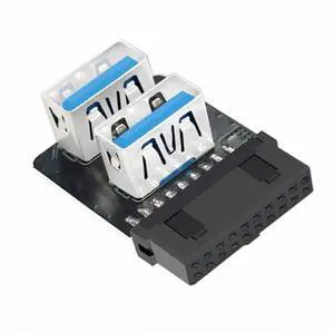 Forward Angled Dual USB 3.0 Type-A Female to Motherboard 20/19 Pin Box Header Slot Adapter 10Gbps Vertical Type-Card 90 Degree