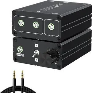 3.5mm Stereo Audio Switcher (2 in 1 Output / 2 in 2 Output) with 3.5mm Audio Cable 2 Ports AUX Audio Speaker Selector for PC Mobile Laptop Headphones