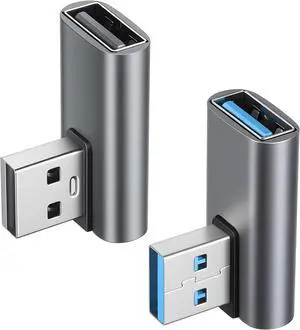 90 Degree USB A Adapter Upward Angle USB A Male to Female Converter Extender for PC Laptop USB 3.0 Charger Power Bank and More 2 Pack