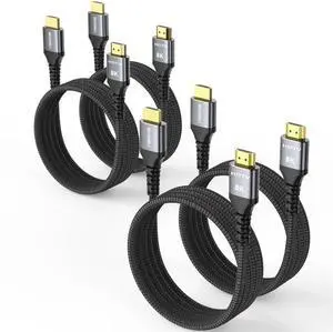 4K HDMI Cable 2 Feet (3 Pack), Ultra HD HDMI 2.0 Cable, Nylon Braided & Gold-Plated Connectors, 4K @ 60Hz, 2K,1080P, HDCP 2.2, ARC, Bulk HDMI Cables for Laptop, Monitors, HDTV, PS5, Xbox One & More- Model #: vfrtR256629261487