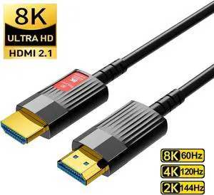 8K Fiber HDMI Cable 16ft, Fiber Optic HDMI 2.1 Cable, (48Gbps, in-Wall CL3 Rated, eARC, 8K 60Hz, 4K 144Hz, HDCP 2.3, HDR10+) Compatible with RTX 3080/3090 Xbox Gaming, VR, HDTV, Monitor, PC