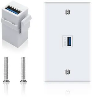 Vszerda USB 3.0 Wall Plate, 1Port USB 3.0 Keystone Jack Outlet Wall Plate for Mount Socket Face Panel Cover, Type A Female to Female Keystone Panel Cover for Charging & Data Transfer, White