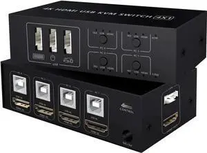HDMI KVM Switch 4 Port HDMI Switcher, 4K @60Hz 4 In 1 Out KVM USB Switch Box for 4 PC Sharing Keyboard Mouse Monitor Compatible with Laptop, PC, PS4, Xbox HDTV