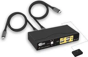 KVM Switch 2 Monitors 2 Computers USB C HDMI, Dual Monitor USB 3.0 USB Typc C KVM Switcher Supports 4K@60Hz for 2 Computers Share Keyboard, Mouse and Monitor