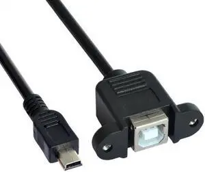 Jimier Cable Mini USB 5pin Male to USB B Female Panel Mount Type Cable With Screws