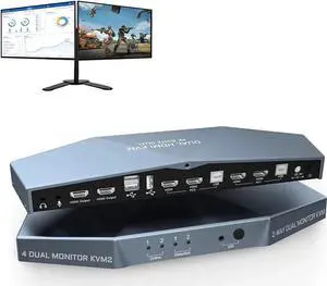 4 Port USB 3.0 Dual Monitor (HDMI+HDMI ) KVM Switch 4K@60Hz With this 4 port USB 3.0 dual-monitor HDMI KVM Switch (HDMI+HDMI), you can easily control 4 signal sources at the same time, share the keyb