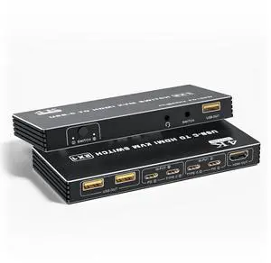 riple Monitor HDMI + 2 Displayport KVM Switch, 8K@60Hz KVM Switches 2 Computer 3 Monitors for 2 PCs Share 3 Monitors and 4 USB Devices, with 2 USB Cables, Power Adapter, Wired Controller