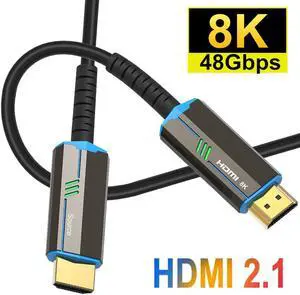 8K HDMI Fiber Optic Cable HDMI 2.1 Fiber Support 8K@60Hz, 4K@120Hz, 48Gbps, eARC, HDCP2.2, 4:4:4, 65ft