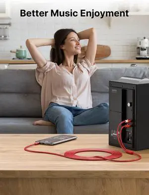 6.6ft/2M Aux to RCA Headphone Male to Male Jack Adapter Nylon Braided 1/8 to RCA Audio Y Cord for Smartphones, MP3, Tablets, Speakers, HDTV - Red