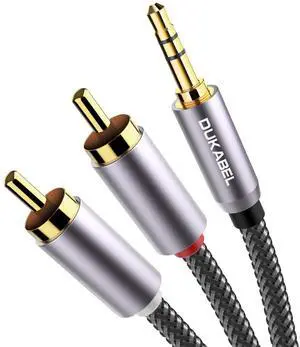 3.5 Aux to 2 x RCA Adapters, Audio Cable for Amplifiers, Active Speakers with Gold-Plated Plugs, 15 Feet/4.6 m, Black