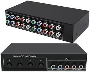 Component AV Video Switch Box 4 in 1 Out, 4 Port 5 RCA YPbPr Cable RGB Component AV Switcher Selector Converter 4-Way Plug & Play for Retro Gaming PS2 Wii Xbox DVD Player TV