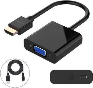 HDMI to VGA Adapter with Micro USB Charging Cord(Male to Female) for Computer, Desktop, Laptop, PC, Monitor, Projector, HDTV, Chromebook, Raspberry Pi, Roku, Xbox and More - Black