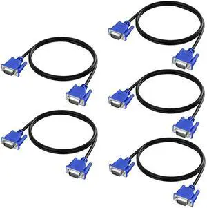 BUCIER 3FT VGA to VGA Cable 5-Pack, 1080P Full HD, 15Pin Male to Male, Computer, Laptop, Monitor, Projector Compatible