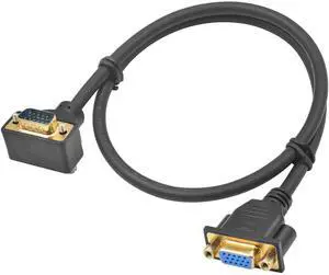 Vszerda VGA Extension Cable 1.5ft, 90 Degree Left Angle VGA 15 Pin Male to Female Extender Cable, HD15 Monitor Video Cable Support 1080P Full HD for PC Laptop TV Projector