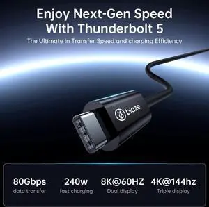 biaze Intel Certified Thunderbolt 5 Data Cable, 5-Foot USB-C to USB-C Data Cable, Supports 240W Charging, up to 120Gbps Bandwidth,Supports 8K/4K Display, iPhone 16, MacBook, and More Devices