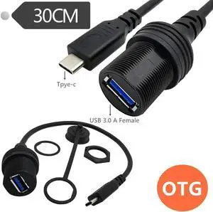 Aomoproing FOR Usb Type C To Usb A Female Otg Cable Aux Flush Panel Mount Cable For Car Truck Boat Motorcycle Dashboard 0
