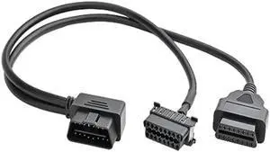 Aomoproing L-SHAPED ELBOW OBD2 OBD II FULL 16 PIN MALE Y-SHAPED OPEN SPLITTER CONNECTOR J1962 MALE 16 PIN TO 2 FEMALE THICK WIRE CABLE ADAP(0.5M)(OBD2 CABLE 1PCS)