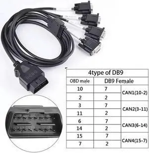 Aomoproing FOR OBD2 16 Pin Wiring Cord 1 Male to 4 DB9 Interface For RS232 OBD 2 Cable Diagnostic Tool Cable Serial Port RS232 Interface Cable