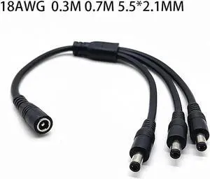 Aomoproing FOR All Copper DC5.5*2.1mm Splitter Cord ing Power Cable 12V LED 1 Female to 3 male 0 0.7M 10A 18AWG